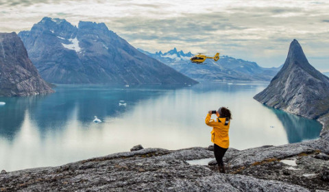 • 在包含的直升机徒步与观光飞行中,惊叹南格陵兰的高山雪峰与遥远山脊