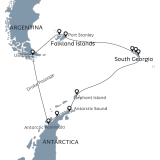 终须告别南极,我们将在返程中再度用两日时间向北穿越那声名在外的德雷克海峡,驶向更为温和的比格尔海峡与阿根廷乌斯怀亚。航程期间,船上将安排丰富活动,供您回味这段非凡旅程:您可在北欧酒吧与新朋共酌特调鸡尾酒,于沙克尔顿酒廊聆听探险队员充满知识与热忱的讲座,或 simply 静赏信天翁伴船北飞的优雅姿态。 |