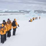 乘坐夸克探险的新船“海洋无极号”,体验真正的极地探险之旅。“海洋无极号”配备2架双引擎直升机,可将乘客带往人迹罕至的栖息地附近,然后乘客将徒步穿过厚厚的海冰,这个星球上最令人向往的企鹅物种就近在咫尺。此情此景不禁让人想起奥斯卡最佳纪录长片《帝企鹅日记》和 BBC纪录片《冰冻星球》中的片断。想象一下企鹅们在冰雪上一个接着一个滑向大海。这样的野生动物时刻弥足珍贵!