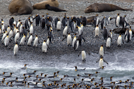 南乔治亚被誉为南极的塞伦盖蒂,是百万王企鹅的栖息地。第一次登陆时,您将站在大卫·爱登堡曾经漫步过的沙滩上,周围是数以万计的王企鹅和成百上千头的象海豹和南极皮毛海豹。在这里,您将远离人类文明,走进动物的王国,重新审视自己作为微不足道访客的角色。我们将在这里度过令人难忘的4天。将通过登陆或者巡游的方式探索这些目的地:古利特维肯(Grytviken):曾是捕鲸站和最大定居点,1966年关闭。这里保留了捕鲸工具和炼油设备,现在有博物馆、邮局和一座白色教堂,沙克尔顿墓地也在附近。福图纳湾(Fortuna Bay):是一片令人惊叹的自然天堂,四周被雪山环绕,海滩上则熙熙攘攘着成群的王企鹅,它们优雅地在草地、沙滩上行走,10月11月还是抚育企鹅宝宝的季节,幼仔长得像猕猴桃,犹如在幼儿园一样聚集在一起等父母回来喂食。斯特罗姆内斯(Stromness):一个废弃的捕鲸站,曾是沙克尔顿救援之旅的目的地。多年后,斯特罗姆内斯已成为企鹅、海豹和象海豹的栖息地,许多建筑沦为废墟。圣安德鲁湾(St Andrews Bay):拥有南乔治亚岛迄今为止最大的企鹅群。这是一个背靠山脉和冰川的宽阔海湾,是数十万只王企鹅的家园,企鹅的叫声会让你感到震撼,就像在听摇滚音乐会一样。金港(Gold Harbour):位于南乔治亚东端,伯特拉布冰川的顶端,海湾悬崖在日出和日落时闪耀着金色光芒。这里是王企鹅、金图企鹅和象海豹的繁殖地,数百对信天翁在冰崖前盘旋,它们每年都来这里交配和养育后代。德里加尔斯基峡湾(Drygalski Fjord):位于南乔治亚岛南端,被巨大的山峰环绕,长长的水舌在壮丽的蓝色冰川中终止。