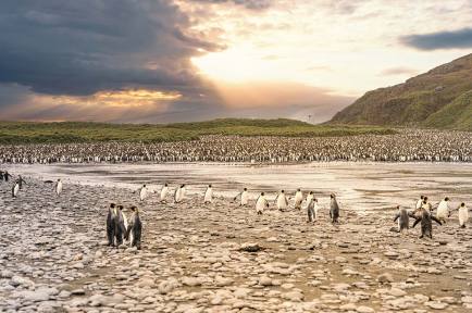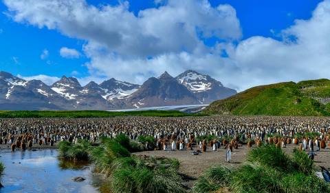 南乔治亚岛常被称为"南大洋的塞伦盖蒂",当您看到数以万计(绝非笔误!)的繁殖企鹅、海豹和海鸟时,就会明白其中缘由。令人屏息的山地景色、雄伟壮观的冰山雕塑、四处可见的冰川,以及丰富的历史画卷,都将为我们沿南乔治亚岛背风海岸航行时所看到的惊人野生动物群锦上添花。我们还将参观具有历史意义的格吕特维肯捕鲸站,那里有一个小小的墓地,伟大的南极探险家欧内斯特·沙克尔顿爵士就长眠于此。