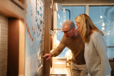 循维京人的航迹我们将穿越丹麦海峡驶向格陵兰岛,这条航线正是维京探险家"红发埃里克"首航格陵兰的路线。航行途中偶有鲸群现身,请随时保持观察。为期两天的航程中,您将有充足时间熟悉邮轮的各类设施。科考团队将举办专题讲座,介绍探访脆弱极地生态区与原住民社区的礼仪规范。此时正是预订岸上观光、学习格陵兰语基础词汇的好时机。当然,这更是适应航程节奏、享受海上时光的美好阶段。您可在餐厅享用精致美食,聆听精彩讲座,或是在舒适船舱中放松身心。当被当地人称为"卡拉利特·努纳特"的格陵兰岛渐行渐近时,那种期待与兴奋交织的情绪将不断升腾——真正的极地探险即将开启!